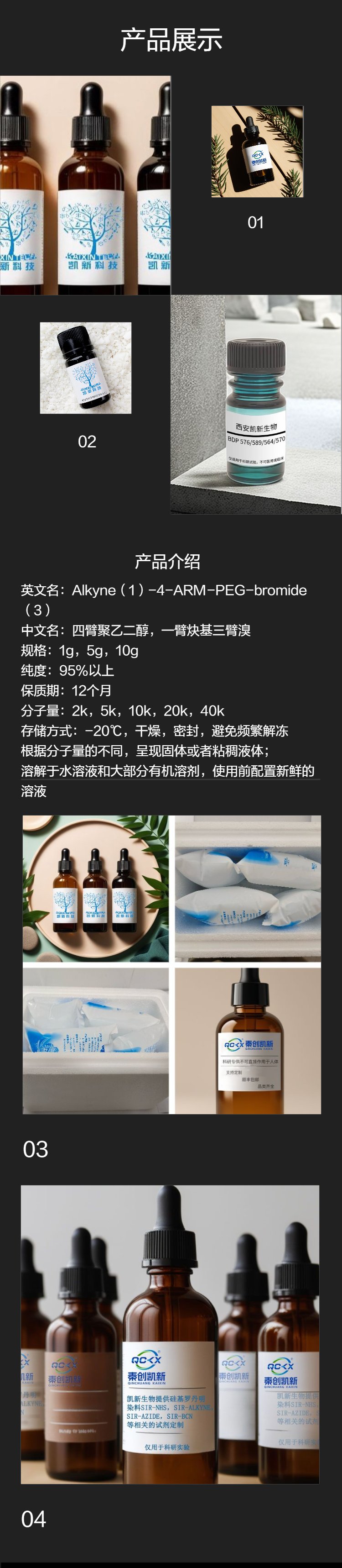 四臂PEG衍生物:其中含有3个臂的环氧基和1个PEG臂的炔基